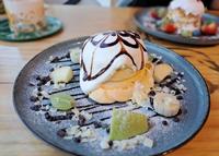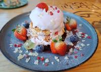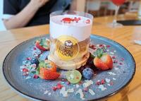 招牌草莓瀑布有新鲜草莓与草莓果酱,酸甜的口感搭配软绵的舒芙蕾吃起来很顺口~