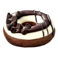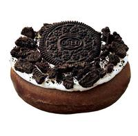 在巧克力甜甜圈上涂抹奶油酱,正中间放上整个OREO饼乾,周围再撒满OREO饼乾碎。可以尽情享受饼乾酥脆口感、奶油酱及甜甜圈结合出的丰富口感。