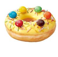 在原味糖霜甜甜圈上沾覆布丁风味巧克力,放上各种颜色的M&M’S巧克力再撒满缤纷糖珠。外型可爱口感也相当有趣。