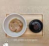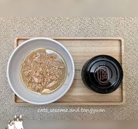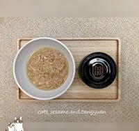 肉丝系列#4牛田园鸡,由牛肉、鸡肉双拼组成,汤汁满多的,若没有在吃牛的猫咪可斟酌喂食。