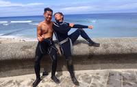 在水里练习的时候,教练要我们双膝着地跪成一列,在教练示范后,轮流做一次动作让教练进一步指导,