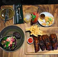 Entree/前菜Bruschetta(V)(VG)意式烤面包 罗马蕃茄,牛油果酱,牛至,罗勒,巴马臣芝士配酸种面包 SzechuanCalamari四川炸鱿鱼 轻炸鱿鱼,青瓜,洋葱丝,柠檬,泰式甜辣酱 PorkBelly猪腩肉 香辣猪腩肉,椰菜丝沙律,日式芝麻酱Main/主菜250gShorthornRump250克短角臀腰牛扒(草饲150天,雪花级别2+) 可选择牛扒的生熟程度。配有Chips炸薯条(A)或FarmSalad农场沙拉(B) ClassicCheeseburger经典芝士汉堡 车打芝士,新鲜生菜,汉堡酱,番茄,洋葱圈配有Chips炸薯条(A)或FarmSalad农场沙拉(B)及可选择MushroomSauce蘑菇酱(a)或PepperSauce胡椒酱(b) LambBurger羊肉汉堡 焦糖红洋葱,柠檬薄荷酸奶,菲达芝士,番茄,新鲜生菜 CheesySteak芝士牛扒 臀腰牛扒,炒蘑菇,焦糖洋葱,胡椒蒜泥蛋黄酱,4式芝士酱,烤意大利三明治 PortugueseChickenSkewer葡萄牙风味烤鸡串烧 烤鸡腿肉串配柠檬,配有Chips炸薯条(A)或FarmSalad农场沙拉(B) PorkSpareRibs烤猪肋骨排 先慢煮猪肋排再涂上自家制烧烤汁炭烧至完美配有Chips炸薯条(A)或FarmSalad农场沙拉(B) LambShoulder羊肩肉 茄子蓉,古斯米,蕃茄乾,鹰嘴豆,阿根廷香辣酱,哈里萨酱,大麻籽 RoastedHarrisaCauliflower(V)(VG)烤哈里萨花椰菜 黑芝麻,鹰嘴豆泥,阿根廷香辣酱,杏仁,香草 PokeBowl日式盖饭 椰菜丝沙律,青瓜,半熟水煮蛋,香葱,芥末蛋黄酱,香菜,糙米,日式调味。可选择牛油果/菲达芝士及哈里萨/香煎三文鱼配泰式甜辣酱/香煎辣猪腩肉Dessert/甜品CremeBrulee(V)焦糖布丁 姜味饼乾,马斯卡彭芝士,柠檬香草 StickyDatePudding(V)枣蓉布丁蛋糕 香浓枣蓉蛋糕,枣蓉焦糖酱,牛奶之花雪糕,琥珀合桃