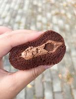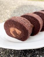 蛋糕卷看起来很乾结果完全不会!口感湿润内馅还有一块生巧克力吃起来疗癒爆表(◍˃̶ᗜ˂̶◍)ノ"