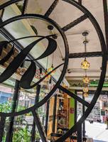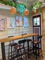 室内走欧洲乡村风格,搭配彩色玻璃吊灯,三重较少有的风格咖啡厅。