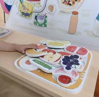 拿着磁铁食材和餐盘当起小老板