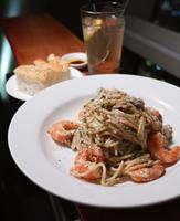 义大利面我点了新品的鲜虾松露奶油起司,浓酱在你口中的余韵非常有存在感,面体偏软烂感,口感见仁见智,我是蛮喜欢的!而且分量十足,加套餐可以一次拥有多样东西,非常推荐!