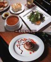 加套餐可以一次拥有多样东西,非常推荐!甜点很精致,从沙拉到饮料面包都很好吃,罗宋汤我也喜欢,番茄味很浓~