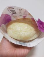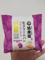 首先是在外包装上就可以看到明显紫色及蓝莓图案的「生クリームパン(ブルーベリーチーズ)」(生奶油面包蓝莓起司),外层同样是白色的柔软面包。