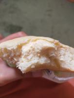 使用了北海道产的赤肉哈密瓜果汁,外皮和内馅都呈现了淡淡的橘色,一口咬下虽然可以感受到哈密瓜的味道,但整体我觉得有点过於偏甜