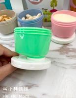 而够大的容量设计,让奶粉盒有更多可能性,除了可以装奶粉外,也能用来装宝宝零食,只要将奶粉盒的底部打开将奶粉盒瓶口的地方跟底部的盖子合上就变成一个小碗,能用来当宝宝的零食盒,另一个功能也能用来当宝宝的副食品碗,刚开始吃副食品的宝宝量不多,用奶粉盒的大小最刚好,省去了初期需多买一堆小碗的费用,其实非常划算~