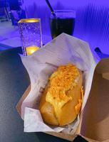 #罪恶起司热狗堡$180我已经算是起司控的,居然会吃到腻⋯我还是比较喜欢起司片或是起司丝去烤的味道,这种起司酱的咸我不爱,还好上面有玉米片增加口感。