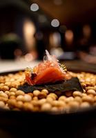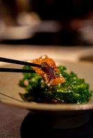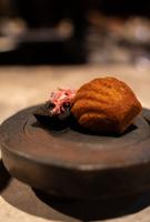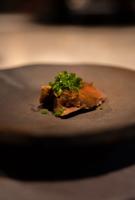 ②鸡肉刺身/日高昆布腌渍一晚/韭菜花