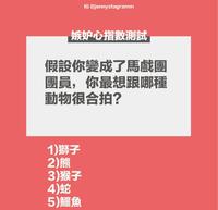 狮子熊猴子蛇鳄鱼【韩国心理测验】你的嫉妒心指数-第四题