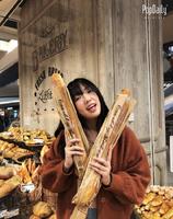 如果超市有面包区,也可以拍出非常有质感的照片哦!抱着面包,加上可爱的表情,一不小心就有cafe的感觉了!