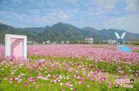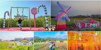 此花区有一个很特别的地方,由大波斯菊种出「真(针)心感谢」的字句来呈现这片花海的特色,再搭配一些爱元素的装置艺术,来感谢全民防疫,就连今年虎年代表的吉祥物也都戴上口罩做好防疫迎接各位呢!