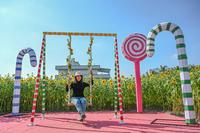 童趣秋千与棒棒糖的装置艺术结合,让我们好像走进了童话故事般,非常有趣又好拍,咕溜鱼也好爱这里所拍摄的照片。