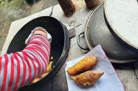 用乾柴烈火碳烤而成的蜜地瓜,树枝+地瓜一起窜出的烟雾带有地瓜香气,弥漫在空气里挥之不去,感觉肚子都饿了!!!
