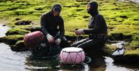 坚毅的海女从大海徒手捕捉新鲜海鲜