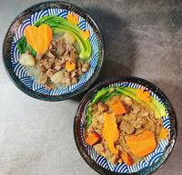 ✔️清炖牛肉宽粉以药膳清炖为汤底配上调理包里本身有的牛肉块和萝卜块汤头很清爽味道很好??自己加了红萝卜和青江菜更加营养丰富呢