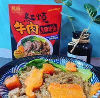 ✔️红烧牛肉细粉口味上偏重属於浓郁的汤头调理包内有卤的很嫩很入味的牛肉块和已经完全软烂的红萝卜块再额外搭配个青江菜好像外面卖的啦?