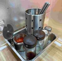 桌上的酱料为自取的。