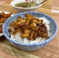 卤肉肥瘦各半,入口时会感受到胶质的黏稠感,调味部分不会过咸,带着淡淡的胡椒香味,米饭也是粒粒分明。