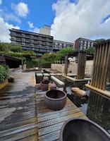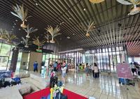礁溪老爷本馆的装潢满日式的,挑高宽敞的空间,可以容纳很多旅客,当天换房的时候,大厅都是满满的团体客,但我觉得她们大厅规划还不错,分左右两半部,也能算是前台跟后厅吧,前台是主要报到的地方,还有一些懒人骨+书柜,让等待的旅客可以看书消磨时间,后厅的地方,就是通往户外设施SPA以及亲子游戏室的场所。