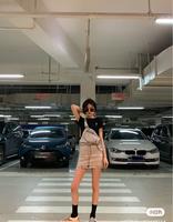 穿搭2 滚边紧身t恤+牛仔吊带裤/裙