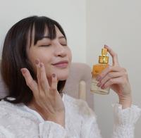 使用压头后喷出来的是水珠状的,带有点金盏花的花香,质地延展性类似化妆水般,很快的就被肌肤完全吸收。