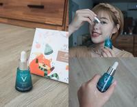 以前就超喜欢薇姿 M89火山精华!这次用到安瓶超级兴奋,但又有点害怕安瓶质地,不过这款不会太过浓稠,比较偏向精华液质感,原先担心安瓶对混油肌来说会太厚重,但这款吸收很快,吸收后脸上会有一层保水膜的感觉,但不会太过闷黏,是早晚都可以使用,不会太负担的安瓶,但因为润泽度很够,我会试肤况决定要不要擦乳液。这款用完脸的透亮效果很不错,非常适合换季肌肤救急使用,而且很温和,也很适合敏感肌的朋朋~