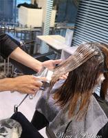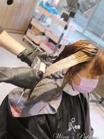 之后分两段上药水,先上上面受损发丝的药水。
