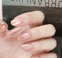 平常如果做腻中规中矩的法式指甲,那一定要试试看这个果冻款,一样是在指尖上填色但设计成流动性,使用玫瑰金比较气质感,也可以改为其他色系,就像果冻、果汁慢慢流下来一样的效果非常疗癒!