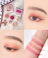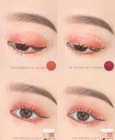 眼妆:先用眼彩冻001+004眼皮大面积打底,后续叠加「#巴黎订制双色眼彩08南瓜派」,清澈透亮的细致珠光南瓜橘色,色调温暖柔和同时让眼神变得深邃有神!