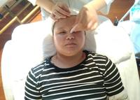 看完耳道内的状况后,就开始放松的疗程,一开始会使用孔雀羽毛进行脸部放松