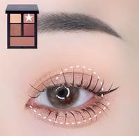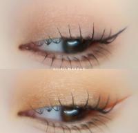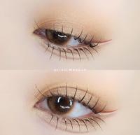 淡雅的粉色调中加入两颗颜色比较浓郁的珠光色,画出来的眼妆属於柔和感的,不过我个人还是喜欢艳丽一点的感觉,所以有用最深的珠光色加深下眼皮前、后段,所以这盘上可淡可浓??