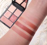 粉质方面我觉得还不错,虽然用眼影刷沾取时,看得出来粉压比较松,但抖掉多余的粉末后,上眼就不太会落粉,而且两盘的珠光亮片色都很美,妆效很细致,我喜欢?