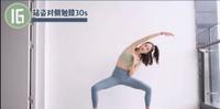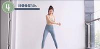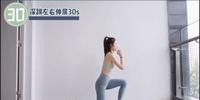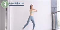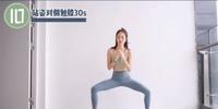 双脚打开并呈现90度,同时将左手往右伸展并挤压侧腰,另一边则反之!这个动作是在启动肌肉,记得在做的时候挺胸不要驼背,并保持呼吸,左右两边轮流做,维持30秒!今天做的每个运动之间,都可以休息10秒,休息完赶紧换下一个动作~