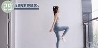 一边腿部屈膝向上抬呈现90度,并将手肘交叉叠放,将身体向膝盖对侧方向扭转,要感受到腹部肌肉发力才有效喔!在做的同时要保持身体的稳定,另外一边的腿要保持绷紧、站稳,速度可以依照自己的能力做调整~一边做30秒,中间可以休息10秒钟。