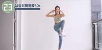 接下来的一组动作是站姿肘碰膝,将右手碰左膝,完毕后脚放回地面,接着马上将脚抬起来并用手碰触小腿前侧!记得保持身体挺直,并将核心收紧,一边各做30秒。