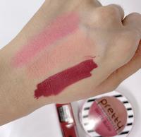 质地一开始较水,过一下后会在唇上变雾面的,饱和度惊人的高