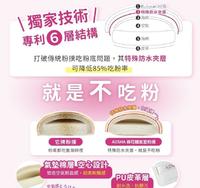 此外这款棉花糖粉扑的特殊点是有六层专利结构,其中有一层特殊防水夹层,可以降低85%的吸粉率。