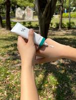 因为他有积雪草成分所以其实防晒的时候还可以舒缓镇定肌肤