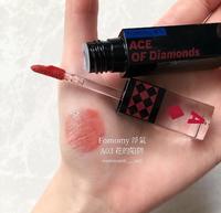 方块唇釉整个系列都做成扑克牌的模样,整支是长方体,透明盖子印有♦️A~