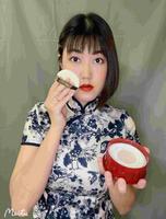 这次以复古的华灯初上装扮,搭配复古年代的资生堂梦思娇粉条&香粉,