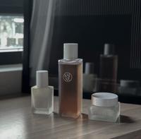 最喜欢的是包装的半透明雾面的瓶身好像是冰块一样的晶莹剔透看了官方介绍才发现它是用回收的玻璃跟塑胶做的超帅