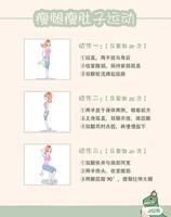 动作一:站直两手放身后,收紧腹部保持背部挺直,双脚轮流跳起屈膝,重复做20次。