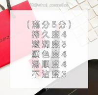 这款唇膏算是断面质地偏乾,涂上一段时间后表层会收乾(?)成膜但是还是会沾染,不过沾染程度不高,也满染唇的~吃完饭之后基本上不擦口红也不至於是素唇。