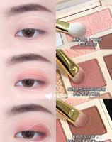 先用嫩粉色给上下眼皮大面积打底,再用玫瑰色加深双眼皮褶皱,余粉带到下眼睑,紫棕色加深眼尾后三分之一处,余粉小范围带到下眼睑后半段~