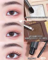 银色细闪提亮眼头和卧蚕前半段,用眼线刷沾取深棕色眼影,顺着眼型自然拉出一条微上扬的小猫感眼线,最后夹翘睫毛刷上睫毛膏就完成了!