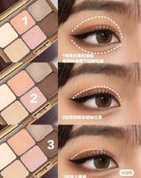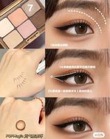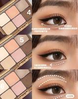 如果手边的眼影比较偏淡一点的也可以画出no:ze的眼妆!先用杏色打面积晕染整个眼窝到眉骨,下眼皮的位置也是轻轻带到~再用粉色加深双眼皮褶皱,最后用深咖啡色加深上眼尾,从眼尾的地方往眼睛中间晕染~